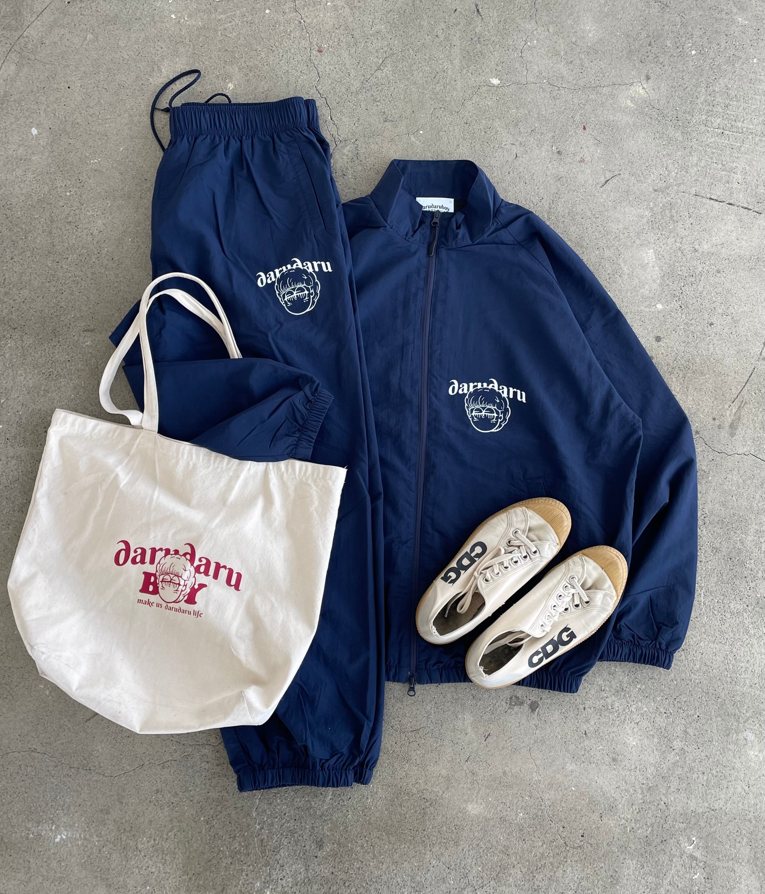 寝起き5秒で家を出れる、だるロゴナイロンセットアップ